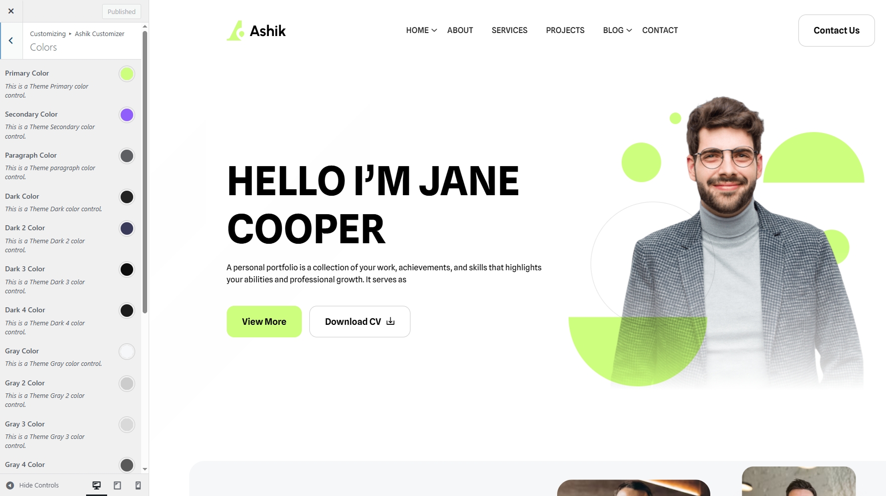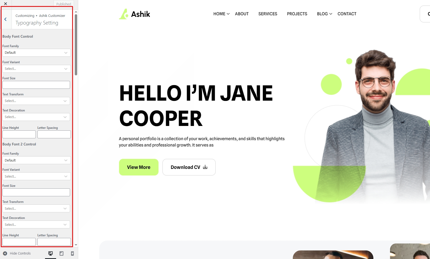 To change all global colors login to wp-admin and navigate to Dashboard > Appearance > Customize > Ashik Customize > Typography and follow the following steps: