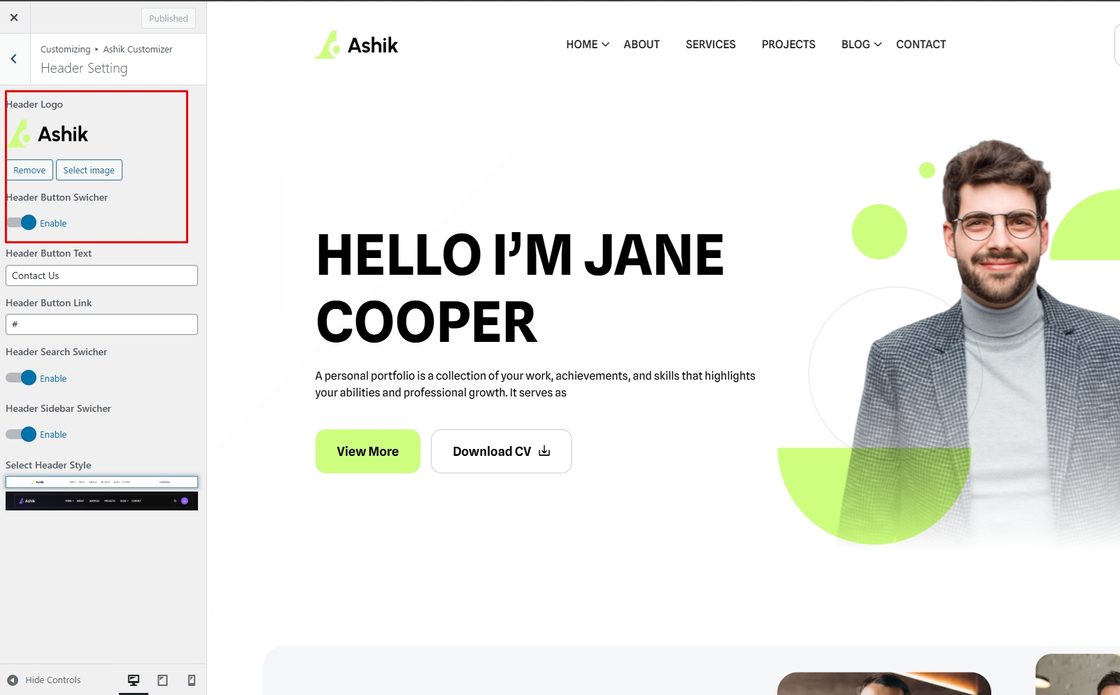 To change all global colors login to wp-admin and navigate to Dashboard > Appearance > Customize > Ashik Customize > Side Info and follow the following steps: