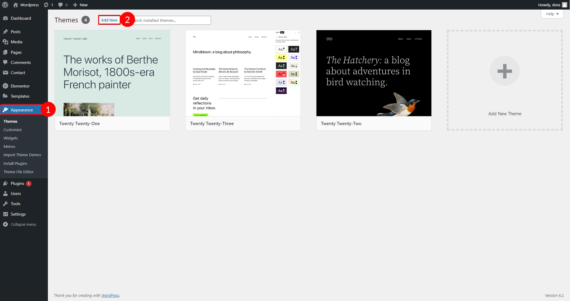 Log in to your WP Admin Dashboard and open the Appearance > Themes menu